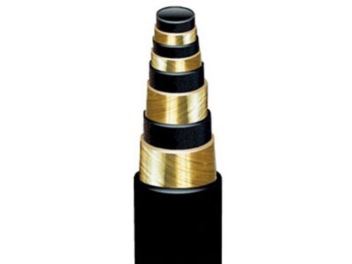 六、高壓鋼絲纏繞膠管結構:軟管由內膠層、中膠層、四層或多層交替纏繞的鋼絲增強層和外膠層組成。