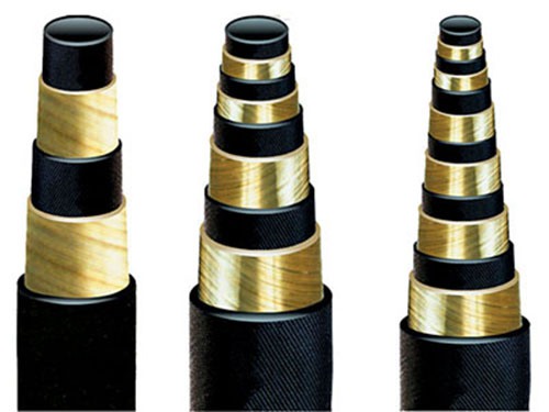 一、產(chǎn)品結(jié)構(gòu):主要由內(nèi)膠層、中膠層、2、4、6層鋼絲纏繞層、外膠層組成。內(nèi)膠層具有使輸送介質(zhì)承受壓力,保護(hù)鋼絲不受侵蝕的作用,外膠層保護(hù)鋼絲不受損傷,鋼絲(ф0.3-2.0增強(qiáng)層)層是骨架材料起增強(qiáng)作用。